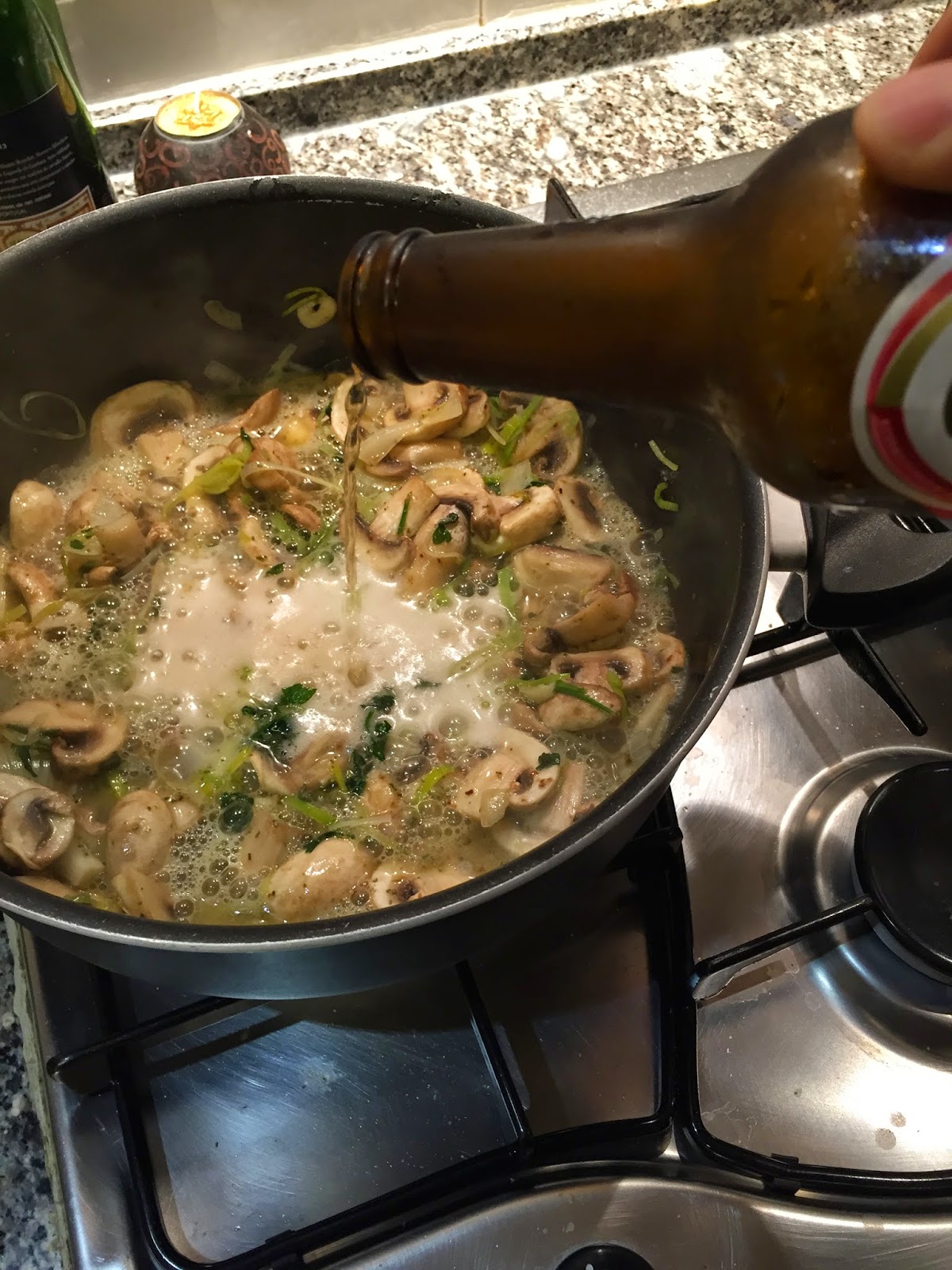 - Deixem cozinhar durante 5 minutos e juntem cerveja