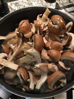 - Depois, juntem os cogumelos castanhos cortados às fatias e os pleurothus às tiras