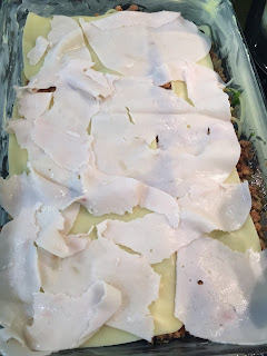 - Nota: eu não coloquei, mas se tiverem molho bechamél juntem um pacote de molho bechamél antes de polvilhar com queijo