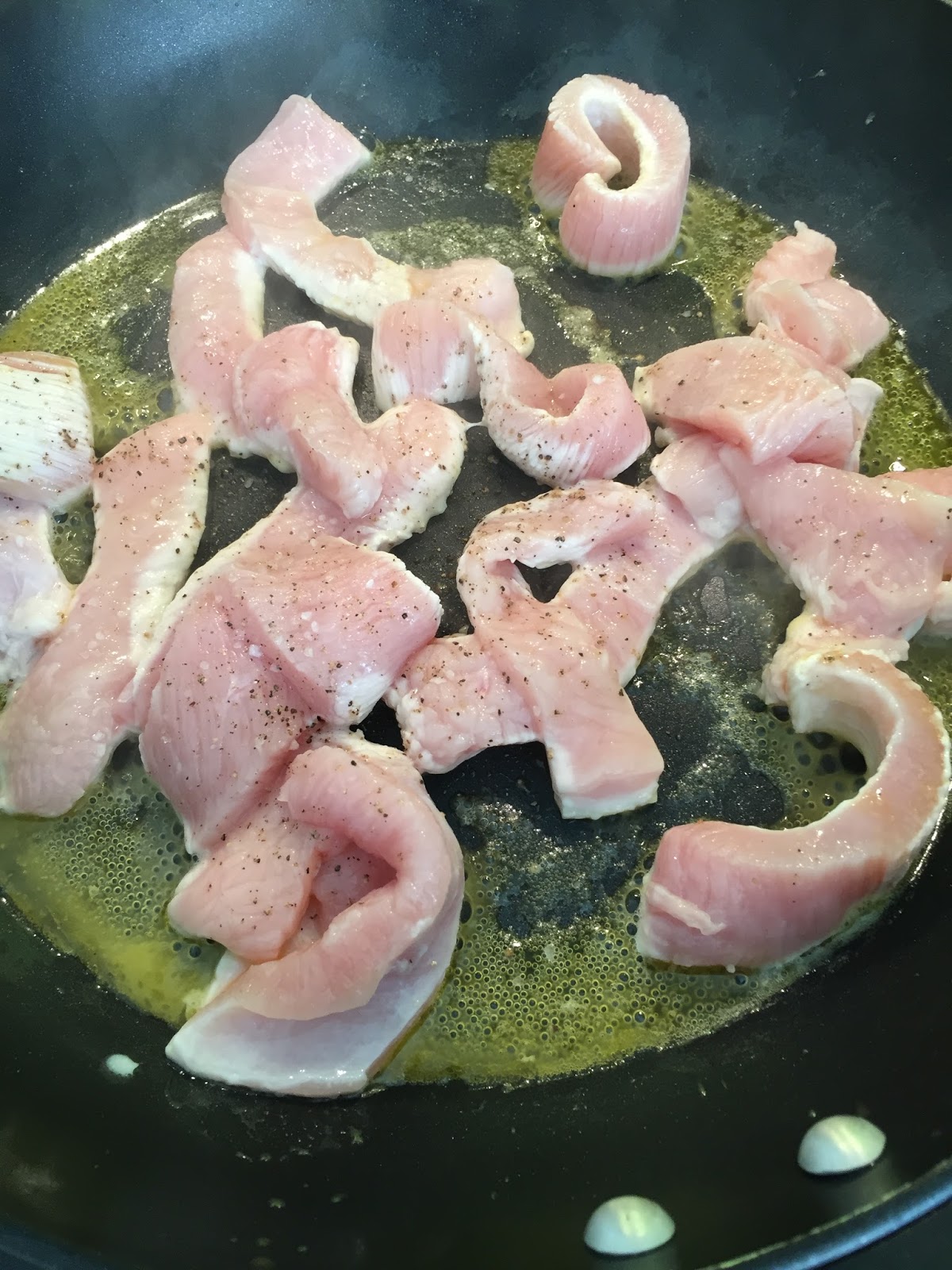 - Temperem as tiras de peru com sal e pimenta