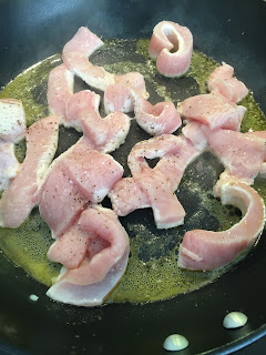 - Quando estiverem com um aspecto cozinhado reservem as tiras e usem a frigideira para refogar a cebola depois de picada