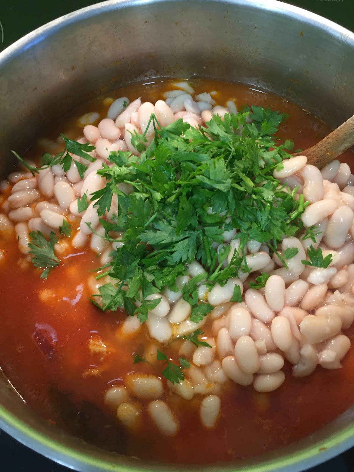 - Deixem cozinhar mais 2 minutos e juntem a salsa picada