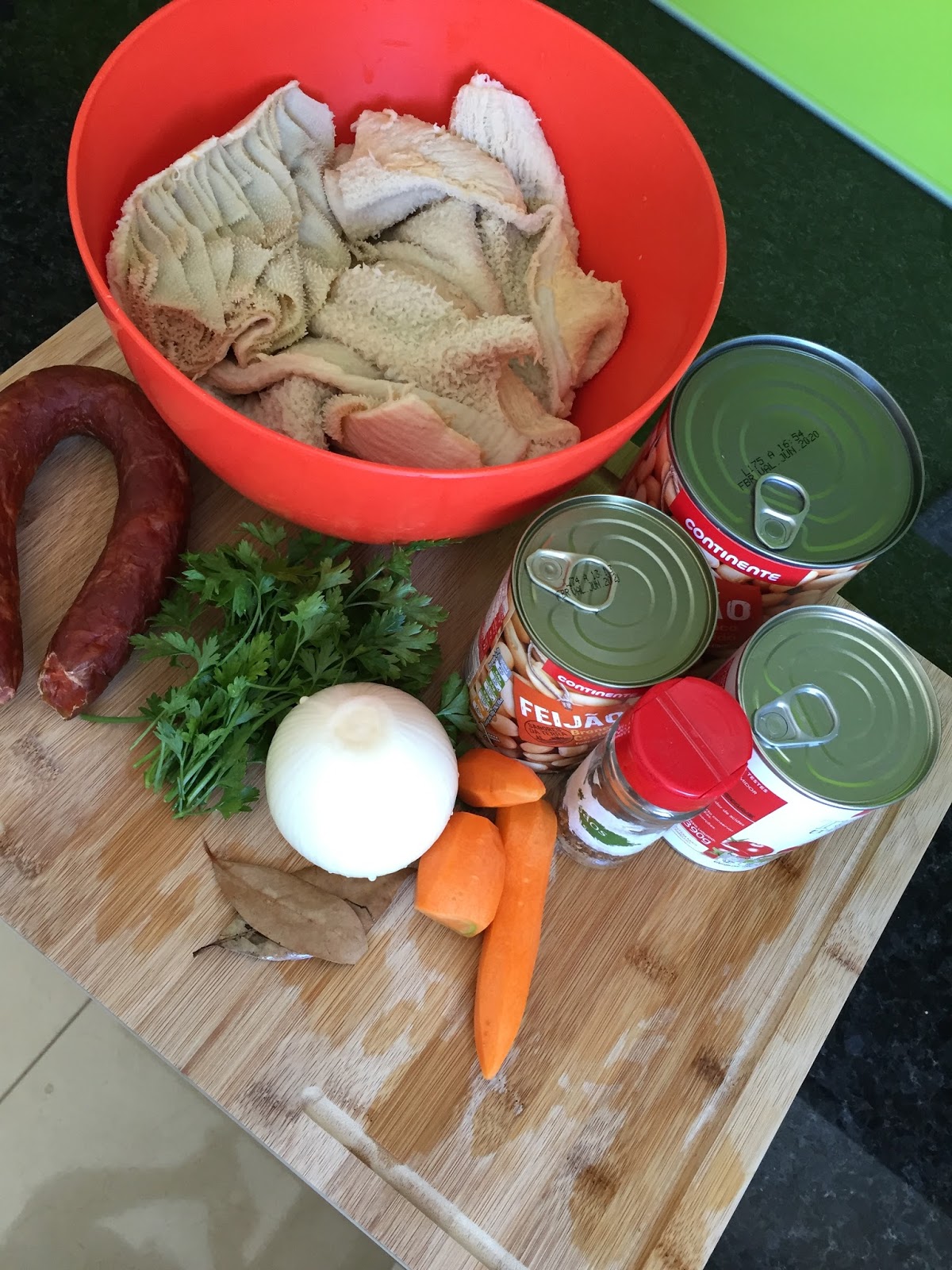 Ah, durante a cozedura da dobrada, há um cheiro intenso no ar. Não se preocupem que o sabor não fica assim tão intenso quanto isso.