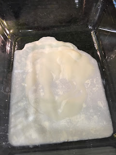 - Entretanto, num tabuleiro de ir ao forno, coloquem uma camada fina de molho béchamel