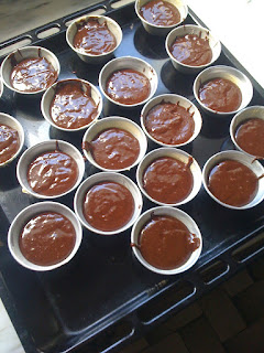 • Se fizeram tudo bem, o interior dos "Petit Gateaux" deve estar com o chocolate derretido, o que é uma verdadeira delícia.