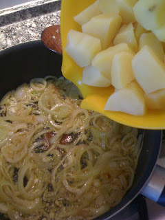 • De seguida, lavem as batatas (ou descasquem e cortem aos cubos, se forem grandes)